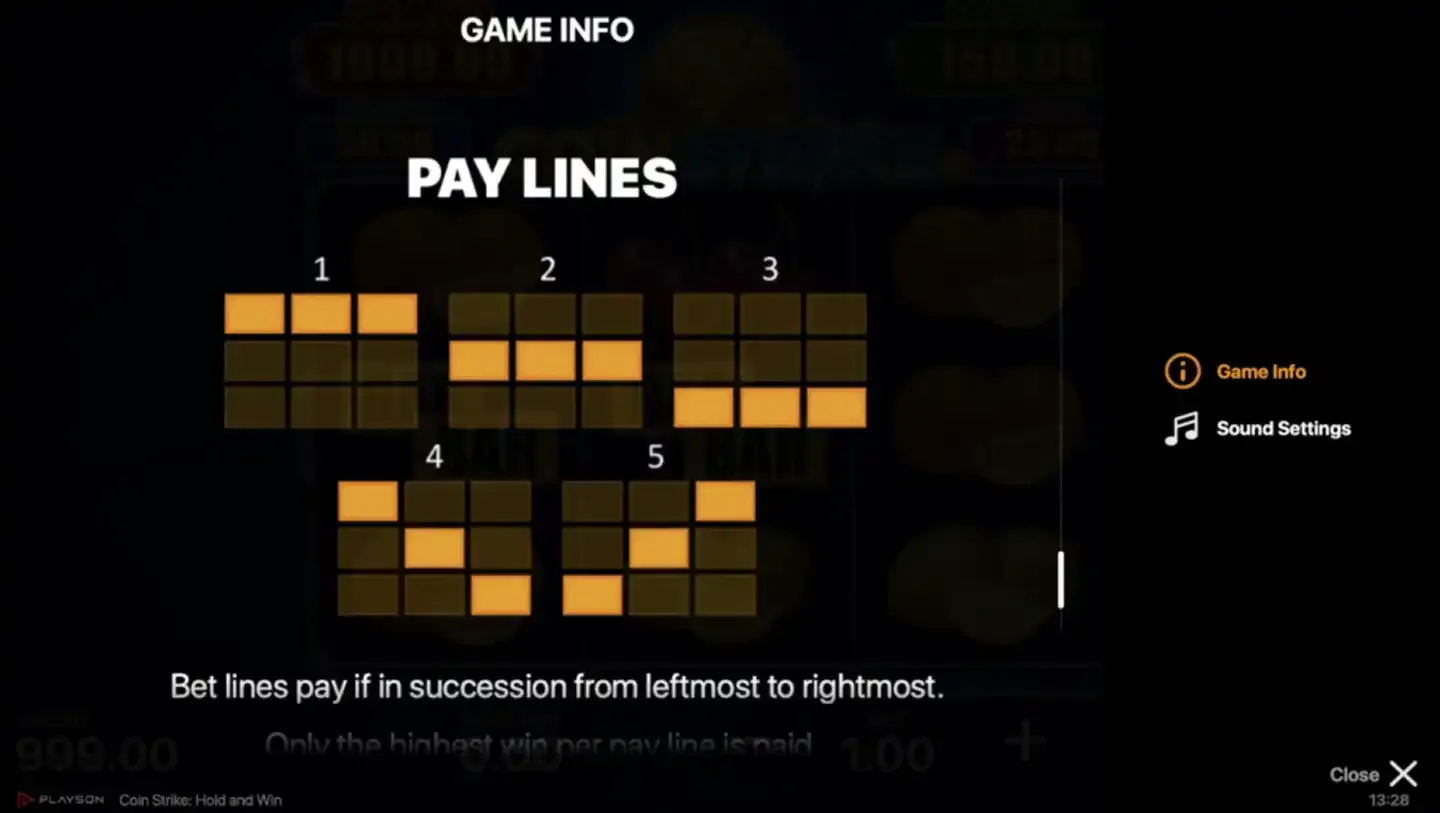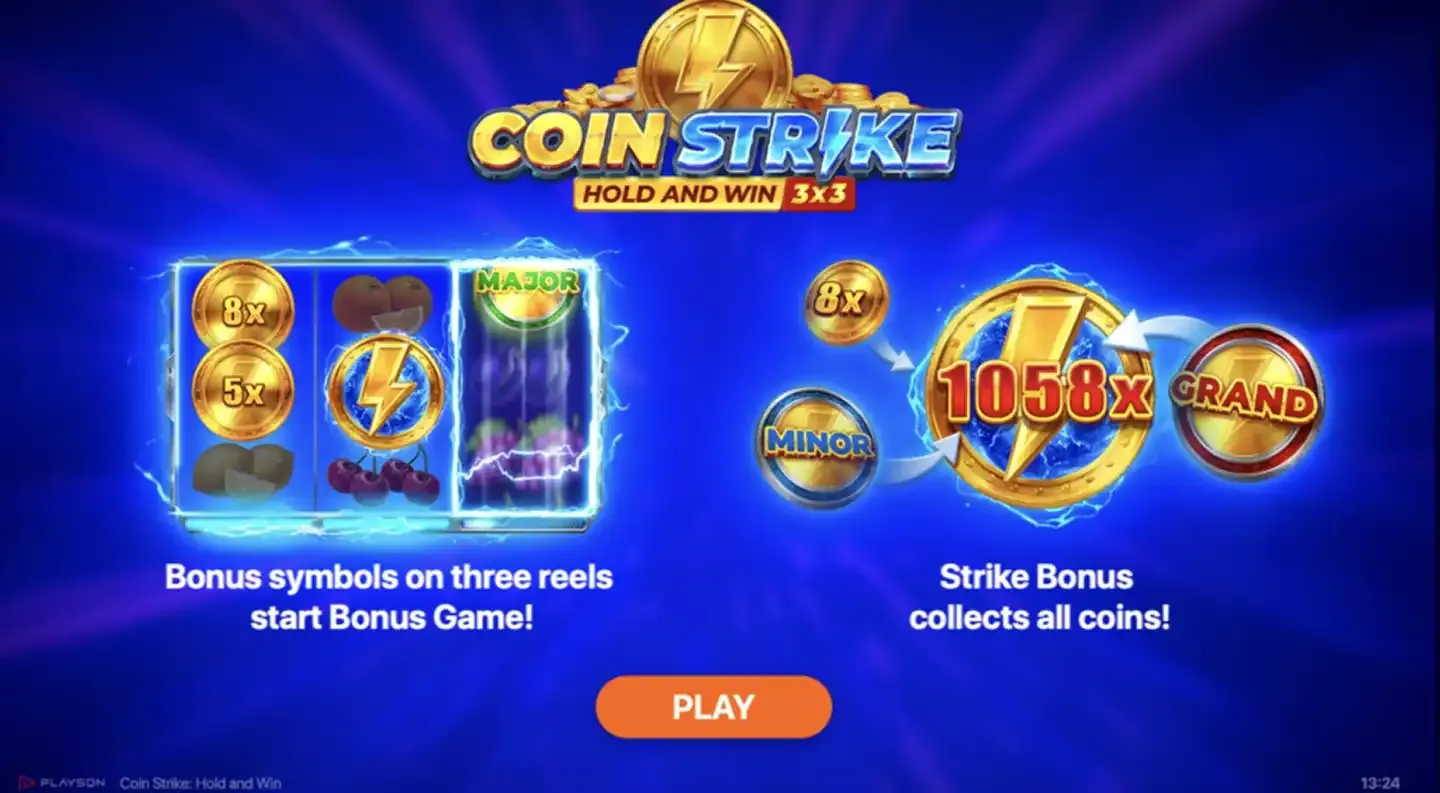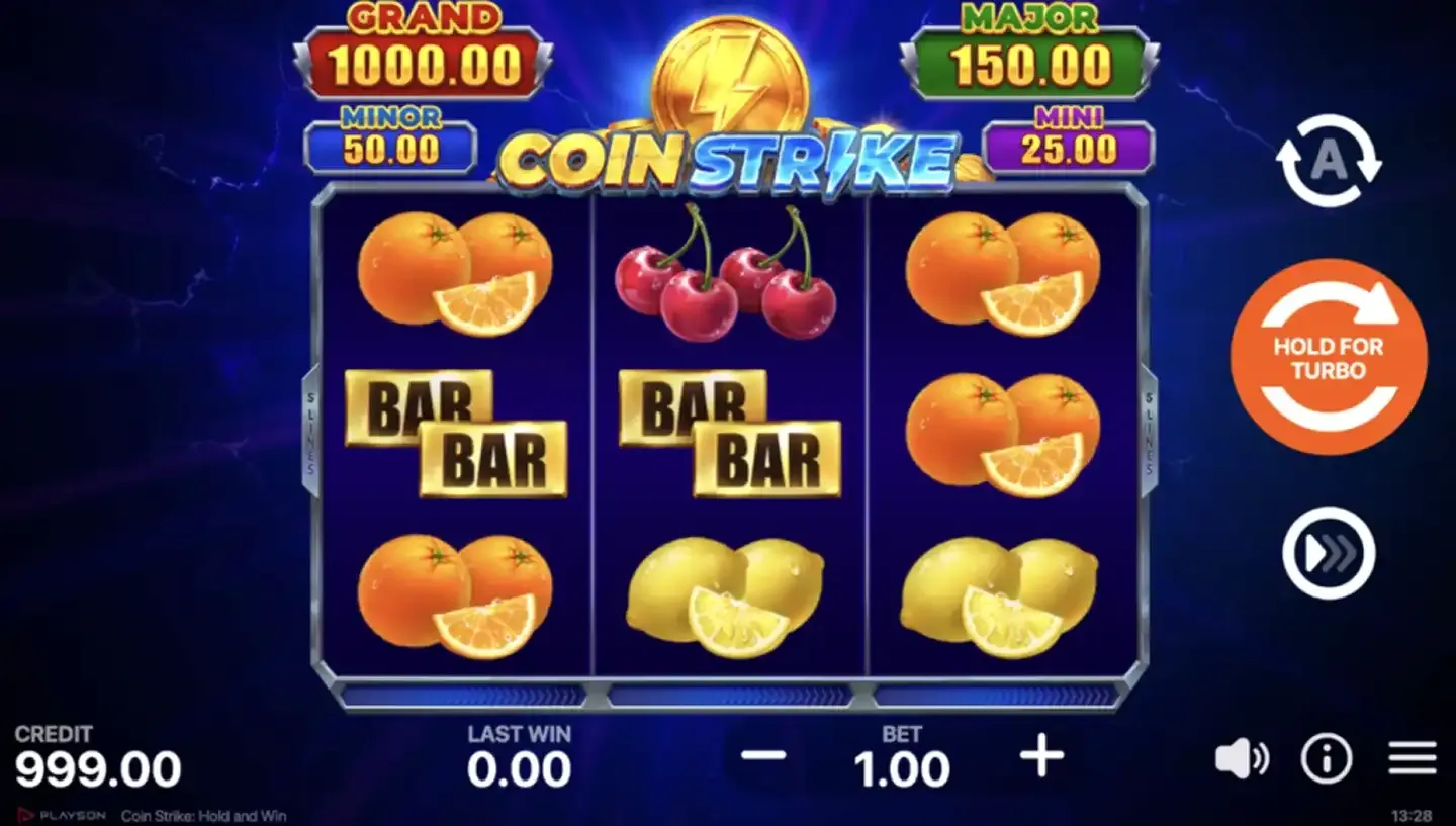 Coin Strike is a modern hold and win style slot game that combines classic fruit machine aesthetics with contemporary bonus mechanics. Developed by Playson, this online slot features a straightforward 3x3 grid layout with 5 fixed paylines, making it accessible for both newcomers and experienced players. The game centres around a coin collection mechanic that triggers the signature hold and win bonus round, where players aim to fill the reels with valuable coin symbols for substantial payouts.
