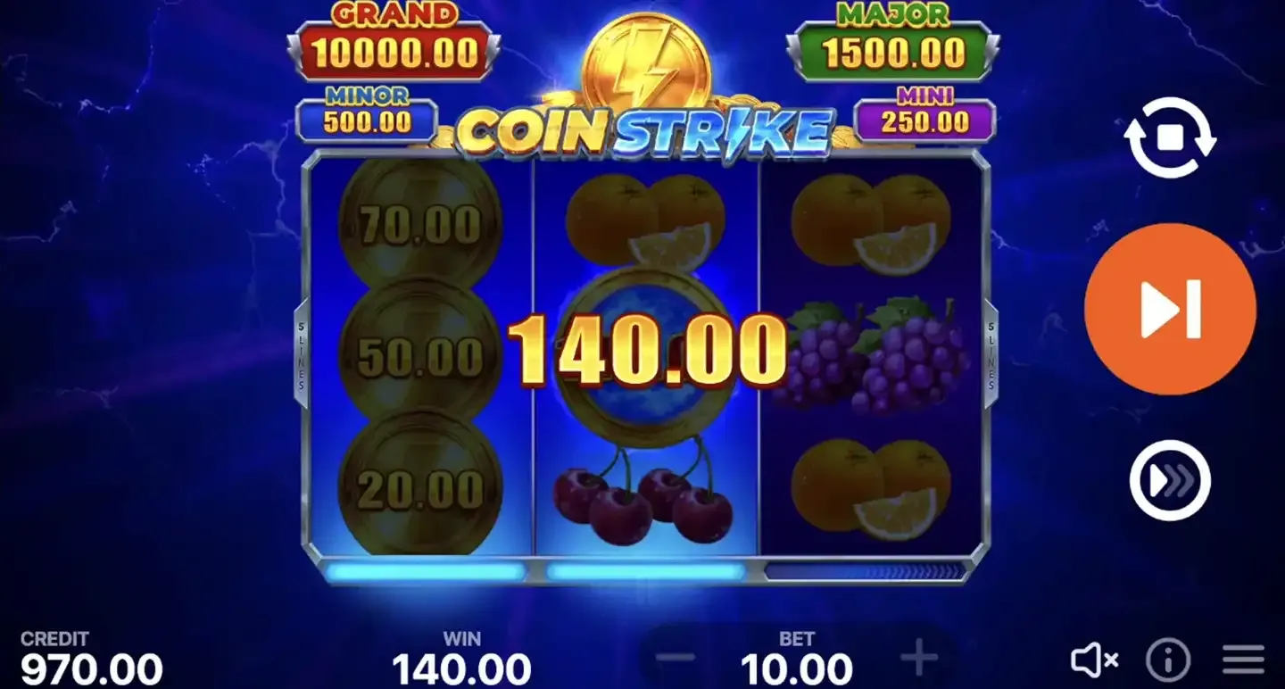 The game Coin Strike accommodates various bankrolls with flexible betting options that typically range from low stakes suitable for casual players to higher limits for experienced gamblers. Specific minimum and maximum bet amounts vary between different Coin Strike casino sites and jurisdictions. You can adjust your bet per spin before each round to match your budget and playing style.